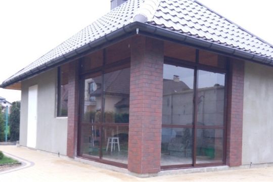 Остекление террасы, веранды может быть холодным или тёплым. При холодном остеклении используются окна из алюминиевого профиля Проведал или ПВХ профиля Слайдорс с одним стеклом или однокамерным стеклопакетом. При теплом остеклении используются системы ПВХ и тёплых алюминиевых профилей.